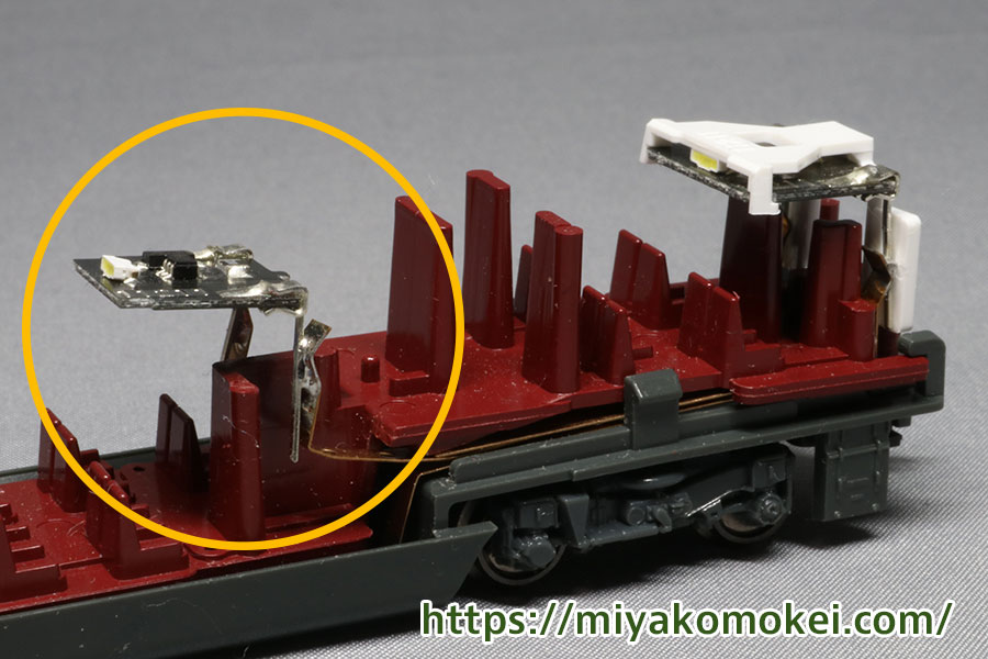 カトー製の白色室内灯は、実車のLED室内灯を模したものとなっています。