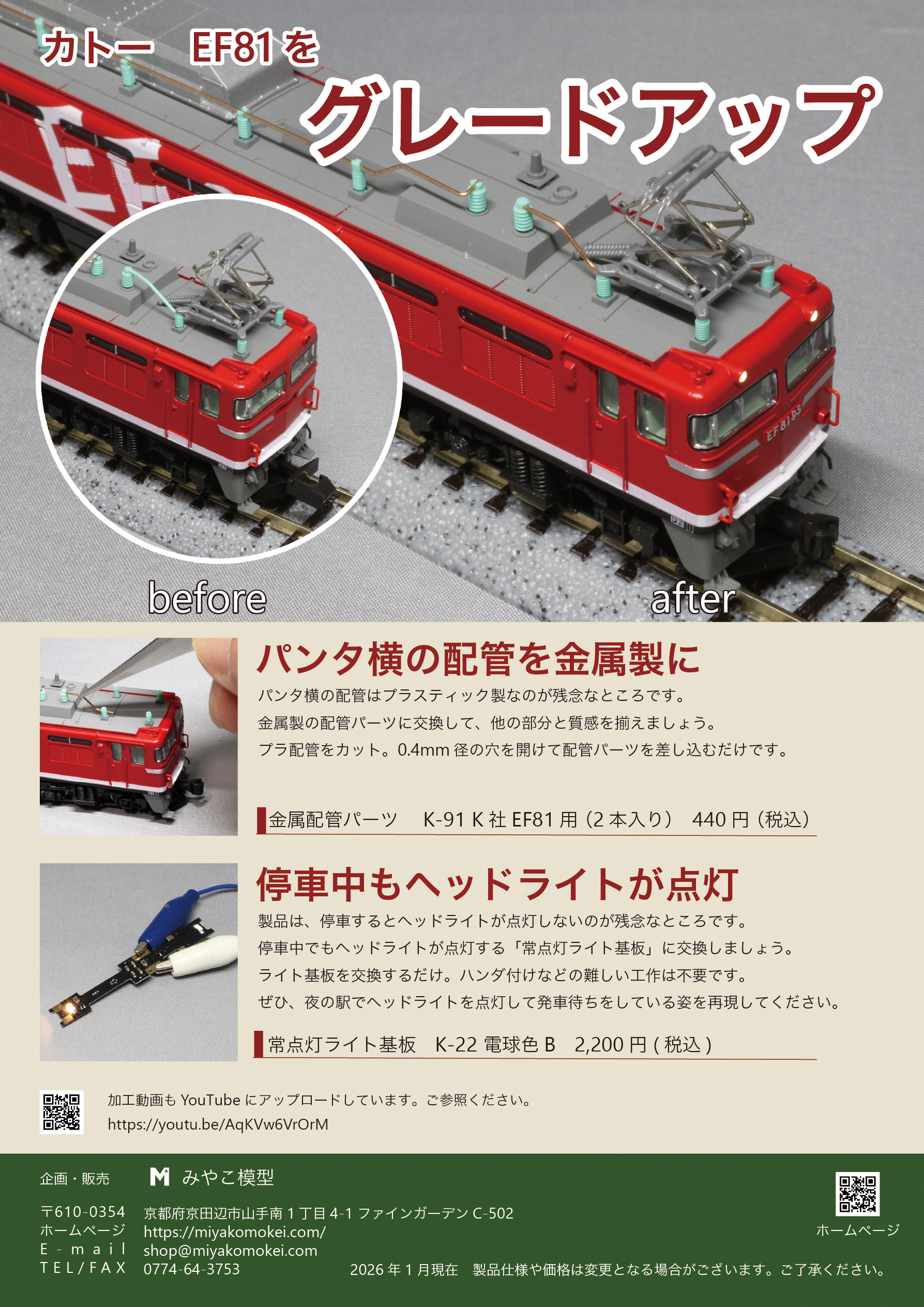 カトー EF81 パンタ横配管金属化 K-91 使用例