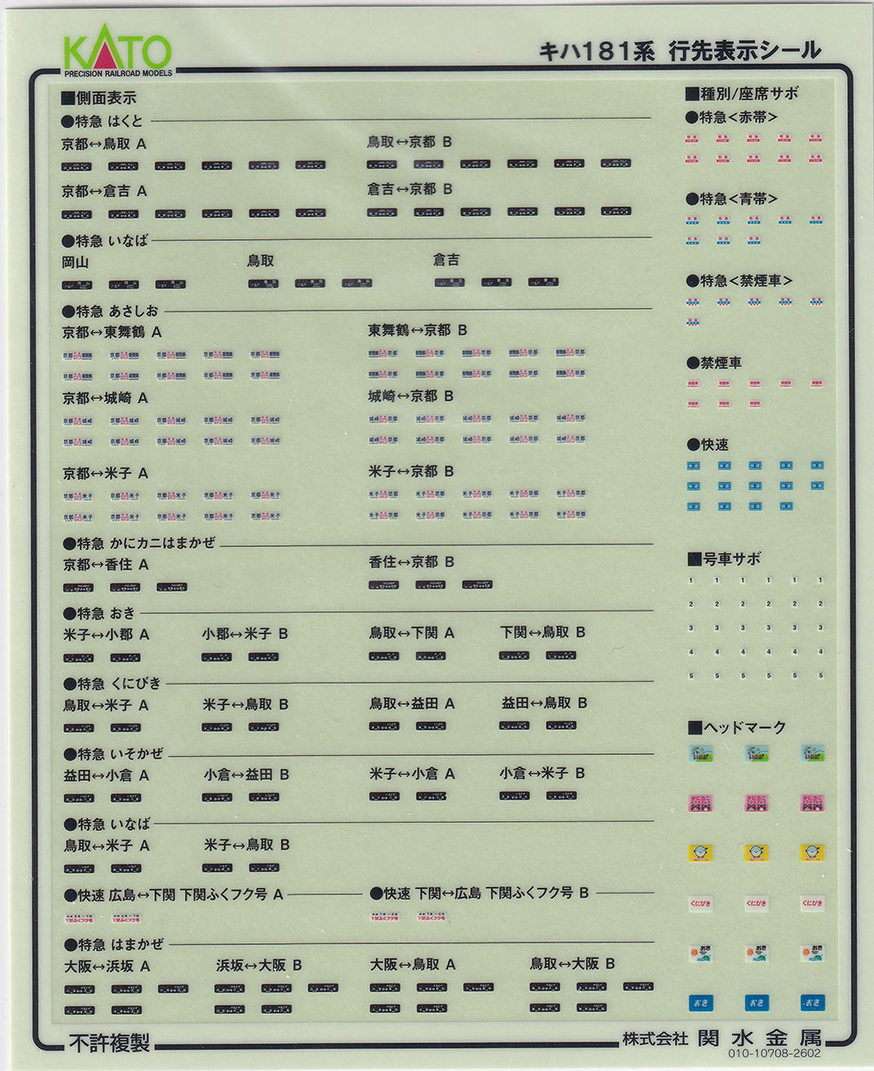 【Nゲージ】 カトー キハ181系関連Assyパーツ、京神模型インレタのご案内