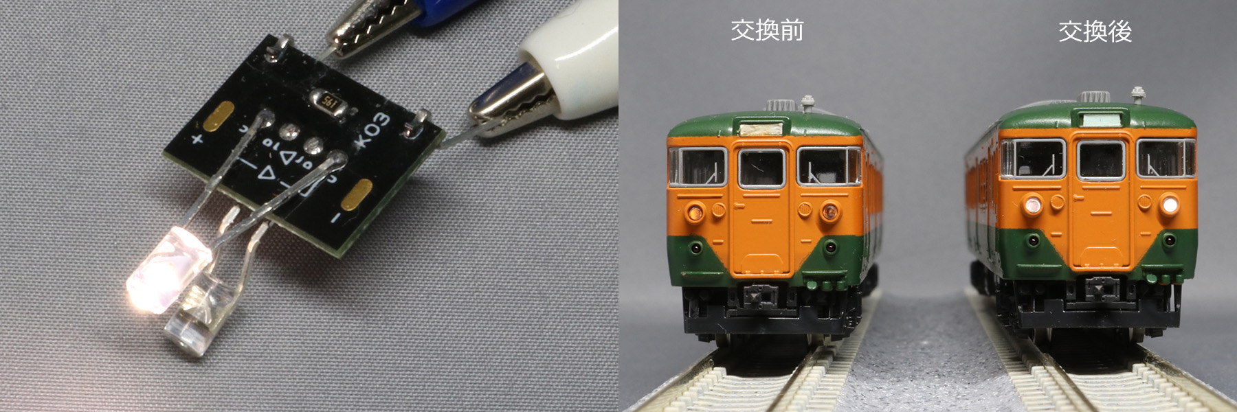 ・ハンダ付けは不要。タネ車のライト基板と交換するだけです。